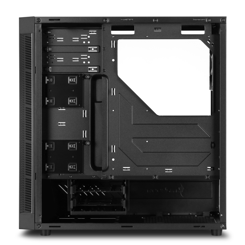 E’ possibile installare un dissipatore per la CPU con altezza massima di 16,7 cm attraverso il foro presente sul vassoio della scheda madre. Lunghezza massima della scheda grafica 40 cm, per l’alimentatore è di 20,5 cm. La parte superiore presenta un filtro antipolvere magnetico, altri due filtri sono posizionati rispettivamente sul fondo e sul frontale del case e sulle bocchette laterali. Tre HDD da 3,5″ o due SSD da 2,5″ possono essere montati nel tunnel del case in modo del tutto indipendente. Due HDD/SSD da 2,5″ a scelta dell’utente sono montabili mediante apposite viti a testa zigrinata sulla parte superiore del tunnel, o verticalmente dietro la piastra della scheda madre, tramite gli appositi supporti. Sul pannello superiore sono posizionate due porte USB 3.0 e due USB 2.0 ed ingresso audio e microfono, oltre al tasto d’accensione e tasto reset.
