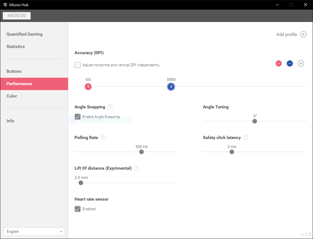 Questo programma ci permetterà di programmare tutti e 7 i tasti con molteplici funzionalità preimpostate o con macro a seconda delle esigenze. É anche possibile creare diversi profili con diversi schemi di colori (per riconoscerli) e assegnare funzionalità diverse ai tasti. Non è purtroppo possibile creare un tasto “sniper” con la possibilitá di ridurre i DPI solo durante la pressione del tasto scelto.